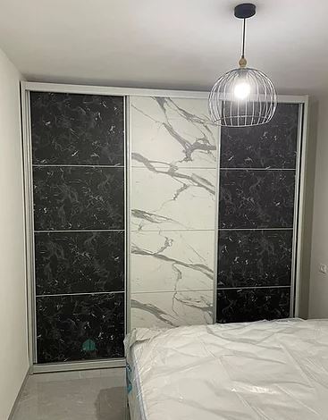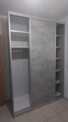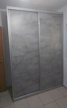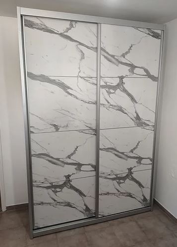 ארון בצבע דמוי שיש ומסגרת אלומיניום בצבע כסוף