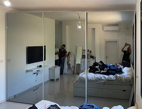 ארון הזזהרחף דגם בילה BELLA כל הדלתות זכוכית , כולל טריקה שקטה כפולה , אפשר לייצר עם דלתות זכוכית שחורה , זכוכית לבנה, או מראה מושחרת ….
