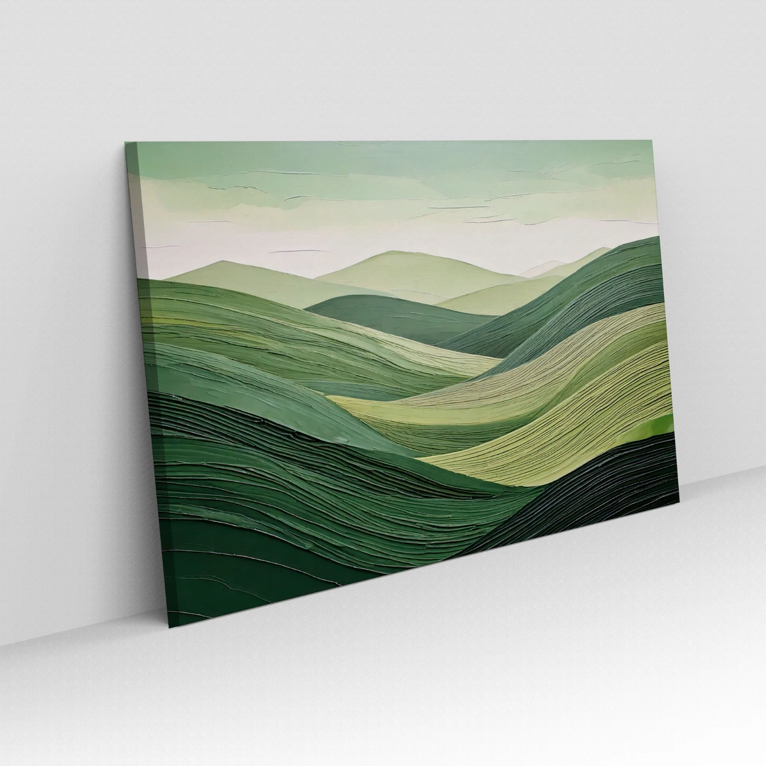 יצירה עוצרת נשימה בהשראת נופי טבע אינסופיים – גבעות ירוקות המתגלגלות זו אל זו בשכבות רכות ועמוקות, כמו גלים של שלווה בתנועה מתמדת.