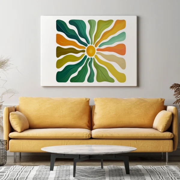 העיצוב משלב טכניקת שכבות טקסטורלית המדגישה קווים זורמים ועומק מוחשי כמעט תלת־ממדי. משחקי האור והצל בין גווני הירוק – מזית בהיר ועד ירוק יער עמוק – יוצרים תחושת מרחב פתוח, אוויר נקי ורוגע פנימי.
